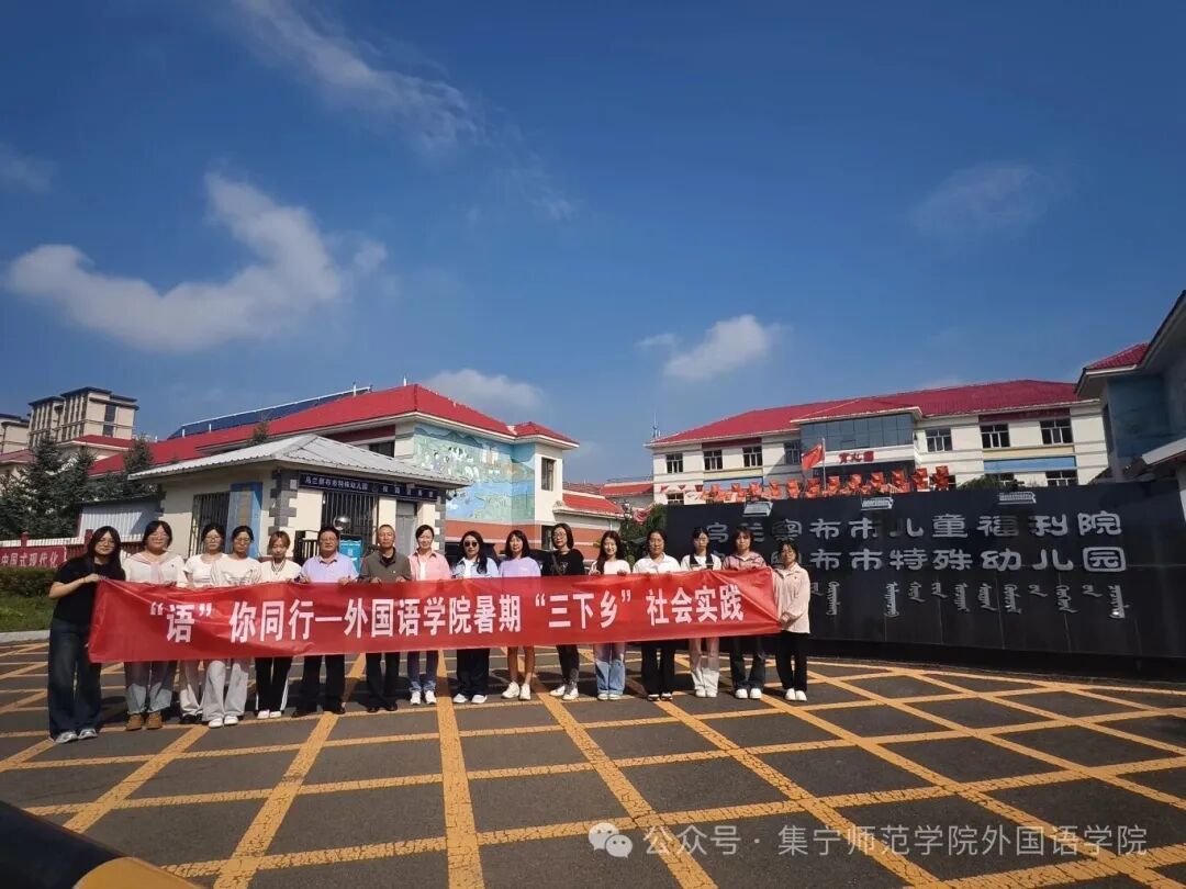 为认真学习贯彻习近平新时代中国特色社会主义思想,深入贯彻党的二十大和二十届二中、三中全会精神,全面贯彻习近平总书记关于青年工作的重要思想,广泛组织引领青年学生投身基层开展社会实践,外国语学院于2025年8月30日前往乌兰察布市儿童福利院开展“语”你同行---暑期“三下乡”社会实践活动。