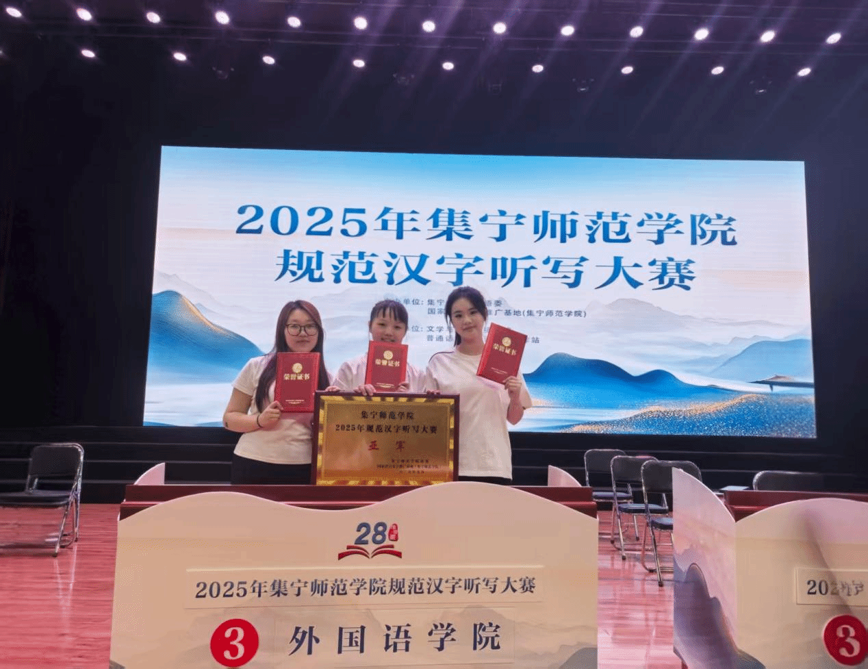 在9月18日举办的2025年beat365在线唯一官网规范汉字听写大赛中,外国语学院派出由2023级二班宾奕轩、2024级四班孙冉、2025级二班张心语三位同学组成的代表队表现优异,从全校18支参赛队伍中脱颖而出,最终以总分第二名的优异成绩荣获大赛亚军!