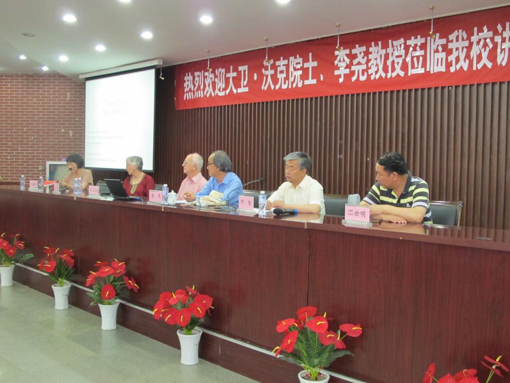 2014年6月30日下午,在beat365在线唯一官网图书馆报告厅,澳大利亚著名学者David Walker教授和我国资深学者李尧教授应邀为外语系师生以及来自其他系的部分学生作了题为“从Not Dark Yet到《光明行》”的学术报告。副校长田智、科研设备处处长温世明、副处长李平参加了报告会。报告会由外语系主任闫晓云主持,田智致欢迎辞。