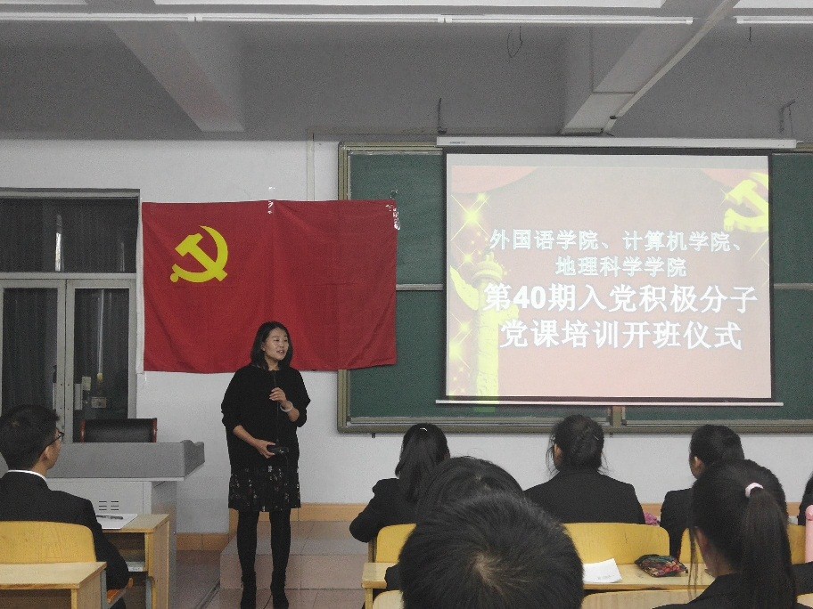 为深入学习贯彻习近平新时代中国特色社会主义思想和党的十九大精神,积极开展“不忘初心、牢记使命”主题教育活动, 落实《中国共产党发展党员工作细则》,帮助入党积极分子了解党的基本知识,提高入党积极分子的思想政治素养,保证新发展党员的质量,beat365在线唯一官网外国语学院、计算机学院及地理科学学院联合开展了第40期入党积极分子培训。