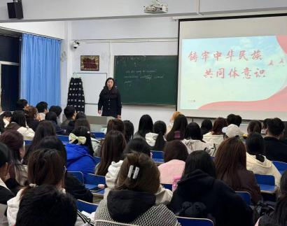 外国语学院团总支书记王新宇以“深刻理解铸牢中华民族共同体意识”为主题,带领团员青年从历史、政治、经济、文化等多个维度深刻理解、准确把握铸牢铸牢中华民族共同体意识的丰富内涵和实践要求,引导团员青年坚持爱党、爱国和爱社会主义高度统一,立志把个人梦想融入实现中国梦的伟大实践,努力成为担当民族复兴大任的时代新人。
