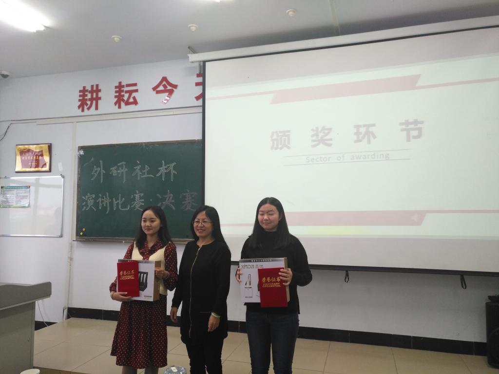 在演讲比赛环节中,主要分为定题演讲和回答问题两个环节。通过前期的海选,共计20名参赛选手进入校级选拔决赛。外国语学院教师教研室主任李红梅、梁虹、平博杰、鲁俊彪及教师高峰、刘利珍担任评委。李红梅对大赛进行了点评。共评出特等奖2人,一等奖5人,二等奖10人,三等奖14人。