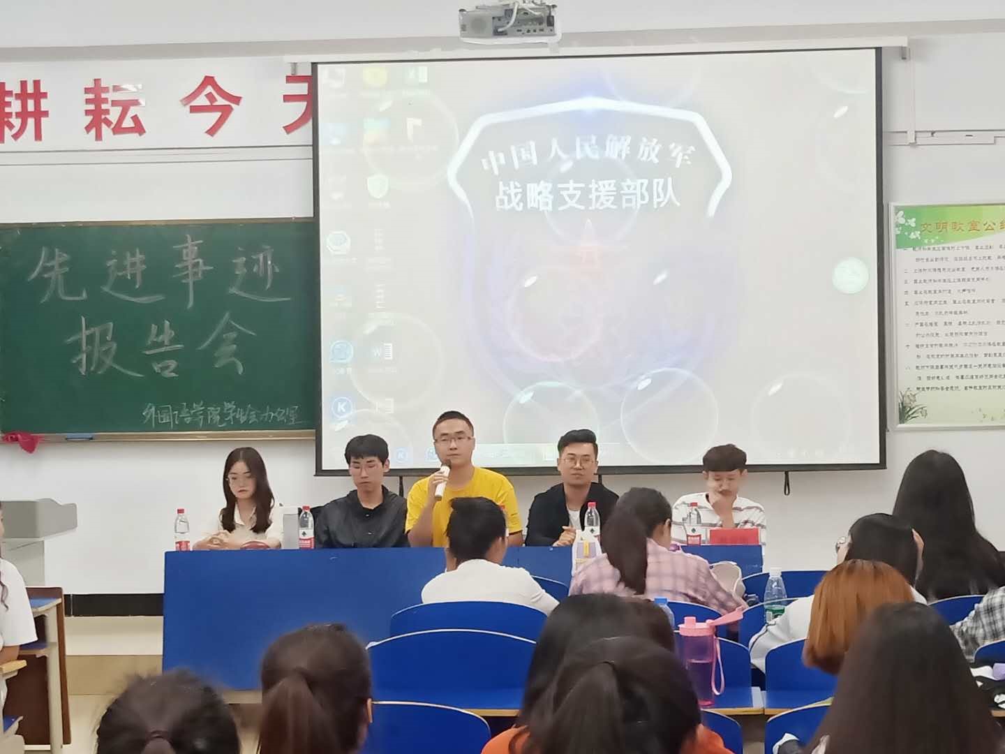 2019年6月12日晚上7:30,外国语学院在主教楼519举办了2019届毕业生先进事迹报告会。