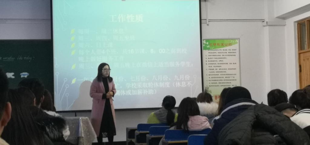 为了切实提高外国语学院毕业生的职业沟通能力,掌握基本的求职面试技巧,切实做好大学生就业服务工作,增加大学生与企业的接触机会。2019年12月12日下午3:00,外国语学院在主教楼520召开就业交流会。此次交流会邀请我院在北京的毕业生分享英语专业相关的就业经验,并进行了就业指导。