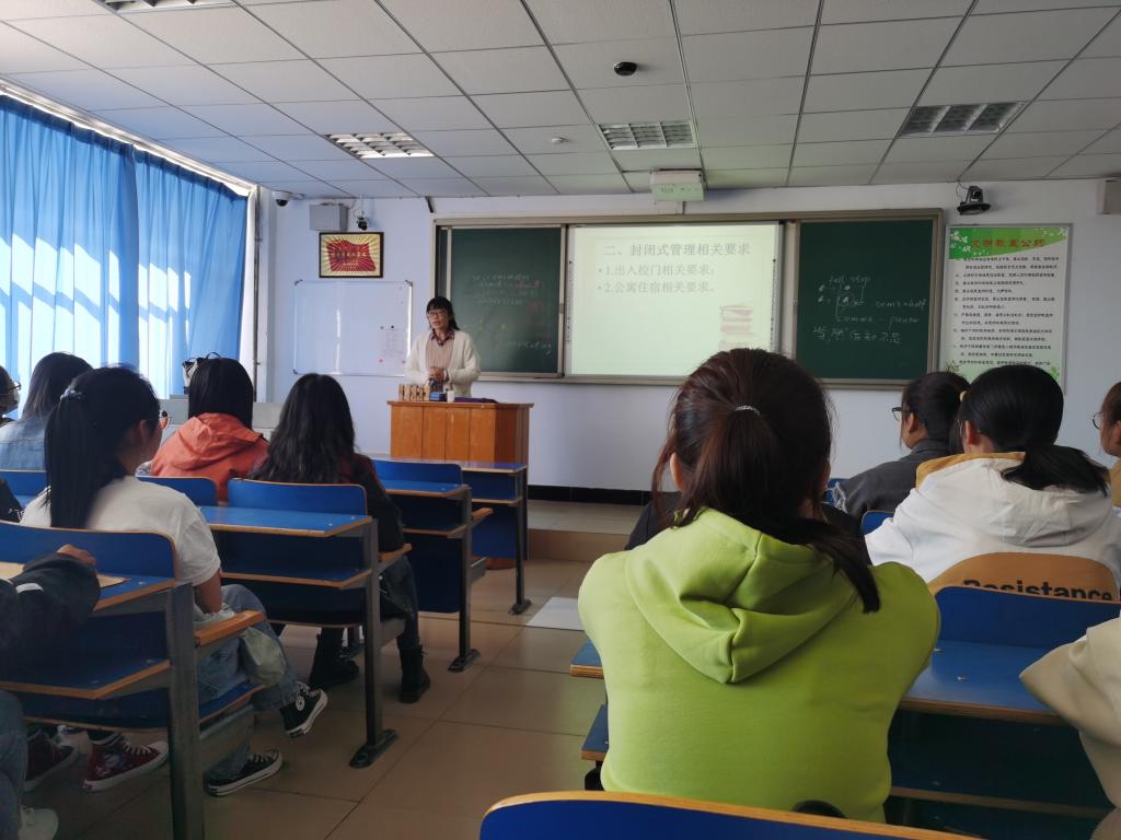 各班围绕“开学第一课,安全教育”以及“多彩的大学生活”等内容,对学生大学生活规划,校内安全,宿舍安全问题进行教育,班主任老师提醒同学们关注学习,认真规划,努力进步,丰富自己的大学生活。大学生活是自由的,学生是课堂的主体,学生必须学会自己主动学习。同时班主任老师还从各种角度提醒同学们保护自己的生活和财产安全。