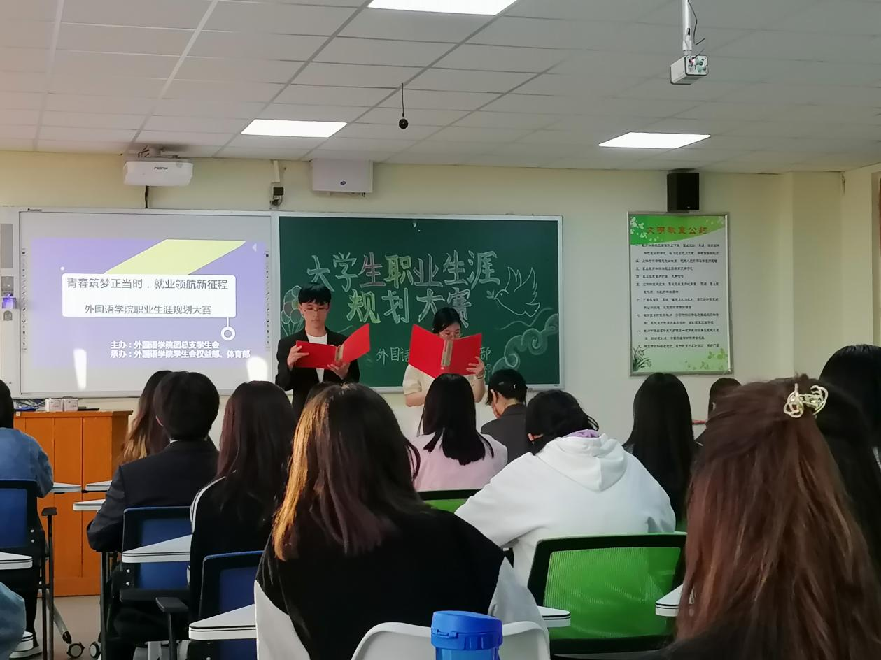 为了提高我院学生的职业生源规划意识,增强学生实践能力和综合素质,培育学生职业道德素养,外国语学院于5月25日举办了大学生职业生涯规划大赛。创业大赛的举办激发了大学生创新创业的热情,营造了“鼓励创新,支持创业”的氛围,为学生创新创业项目搭建了与企业,社会投资对接的平台,为大学生创业计划的实施提供了可能性,提升了大学生的创新能力。
