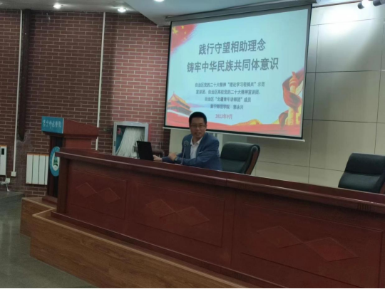 为进一步加强民族团结进步教育,引导广大学生牢固树立中华民族共同体意识,外国语学院联合文学与新闻传播学院和数学与统计学院于9月22日晚举办了以“践行守望相助理念,铸牢中华民族共同体意识”为主题的民族团结教育讲座。本次讲座主讲人为马克思主义学院郭永兴老师,参加讲座的有各学院辅导员、班主任及2023级全体新生。