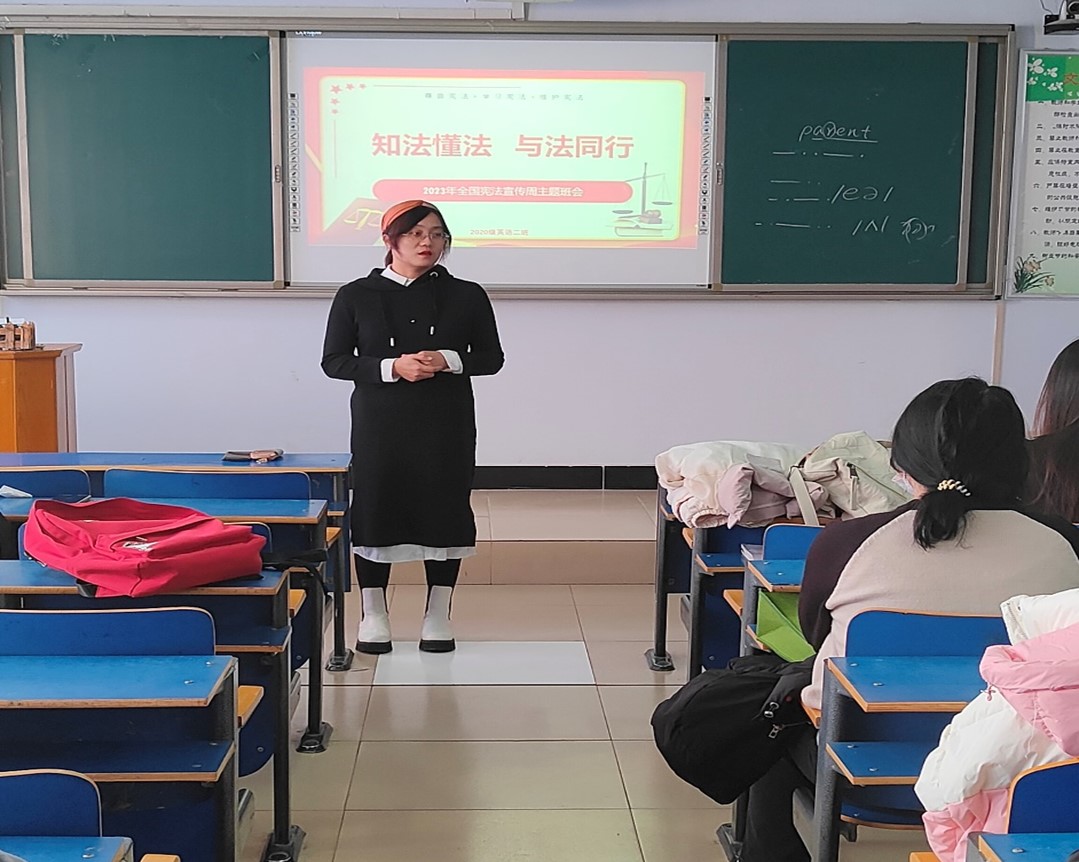 为提高学生的法治意识和法治观念,培养学生养成遵纪守法的好习惯,外国语学院各班在十二月上旬有序组织了以“大力弘扬宪法精神,建设社会主义法治文化”为主题的班会活动。此次班会中,各班结合2023年全国“宪法宣传周”,开展宪法宣传,弘扬宪法精神,鼓励学生积极参加全国学生“学宪法 讲宪法”活动网络学习,践行“宪法卫士”行动计划,组织《宪法伴我们成长》歌曲传唱活动。班会强化了学生“学法、知法、守法、护法”的意识,营造了浓厚的学法用法氛围。