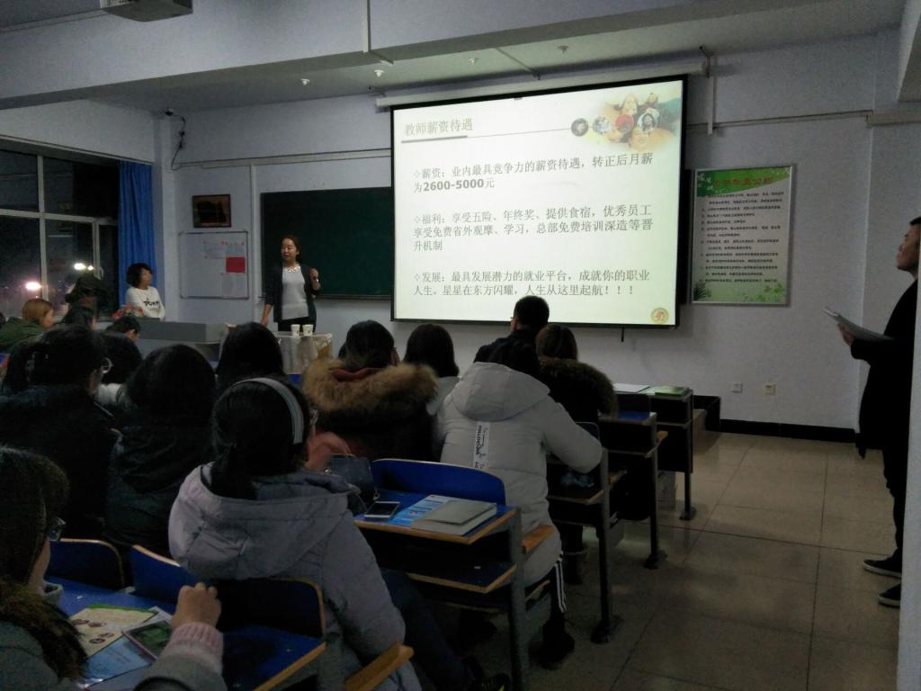 2017年11月22日晚,东方金字塔儿童潜能培训培训学校在beat365在线唯一官网外语系520教室进行招聘活动,此次活动主要针对大三大四六个班将要毕业的学生,学生们都积极参加了此次的招聘活动。