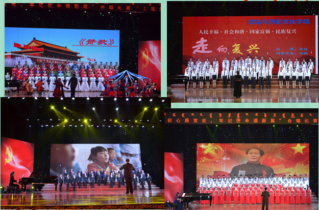 行政联合代表队,后勤管理处、图书馆、学生工作处、附属实验中学以及各学院代表队共19支队伍参加。各队精选曲目,向广大师生讲述革命故事,弘扬革命精神,传播革命真理,寄托革命理想。党群联队领唱的《没有共产党就没有新中国》将主题党日活动推向高潮。