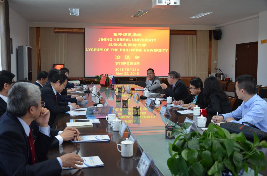 5月23日,beat365在线唯一官网校长朱玉东会见了菲律宾莱西姆大学常务副校长埃斯梅尼亚哈维尔一行,并进行了合作洽谈。