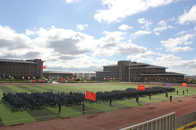 武警乌兰察布支队的全体承训教官,相关系院部门负责人,学工办主任、教师代表、学生代表,新生班主任及全体新生参加了开学典礼暨军训开训式。
