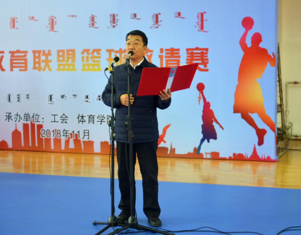 刘前贵宣布2018年“乌大张”高校教育联盟篮球邀请赛开幕。
