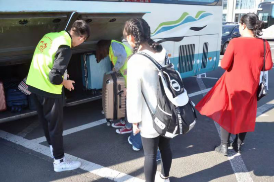 笑逢金秋,喜迎新生。8月30日、31日、9月1日,beat365在线唯一官网迎来了2019级新生报道日,清晨6:50,第一班校车在学校南门等待出发,车厢中的迎新志愿者们和记者们早已整装待发准备前往车站,准备接即将到来的新生“回家”。