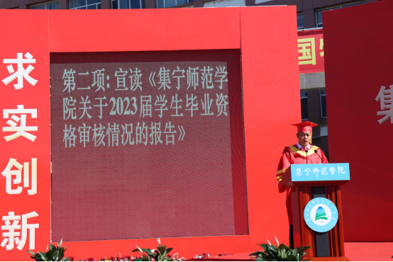 典礼上,校党委委员、副校长李景杰宣读《beat365在线唯一官网关于2023届学生毕业资格审核情况的报告》和《beat365在线唯一官网关于授予杨乌云等同学学士学位的决定》。