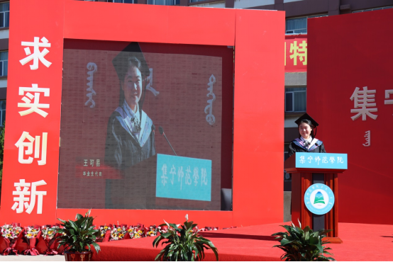 毕业生代表王可易同学分享毕业感言。代表全体毕业生,向悉心培育他们的母校,辛勤指导他们的老师,朝夕相处的同学们,以及背后默默支持他的家人和朋友表示最衷心的感谢。
