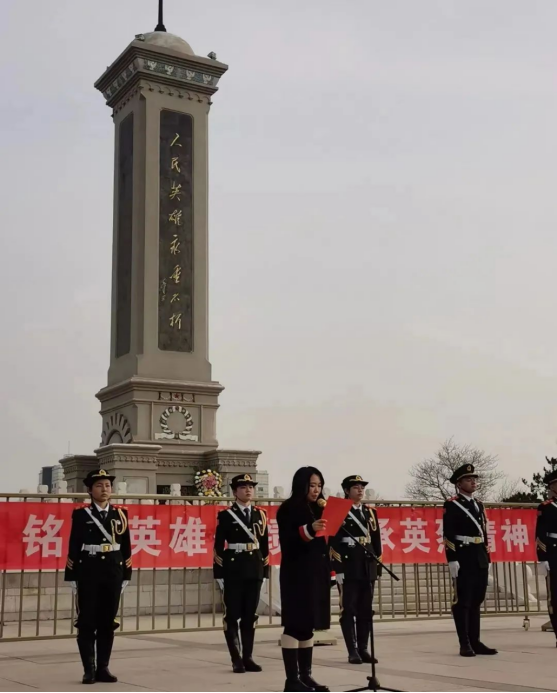 全体师生向革命先烈和人民英雄肃立默哀,鞠躬行礼,寄托深切哀思,表达对先烈的崇高敬意。