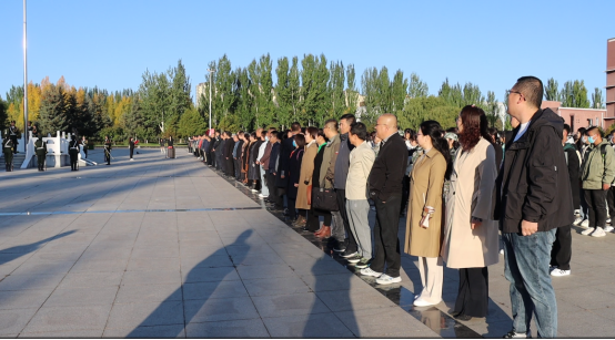 10月9日,beat365举办庆祝中华人民共和国成立74周年“同升国旗 同唱国歌”升国旗仪式。校党委书记朱玉东,校党委副书记、校长刘春,副校长李凤斌,党委委员、纪委书记、监察专员赵永军,党委委员、副校长李景杰,党委委员、副校长拓俊杰,党委委员、统战部部长赵向军,党委委员、宣传部部长郭英,各党政教辅部门负责人,各二级学院班子成员、团总支书记、辅导员、班主任及学生代表参加升旗仪式。团委书记王晓瑭、副书记范娟分别主持泉山、白海校区升国旗仪式。