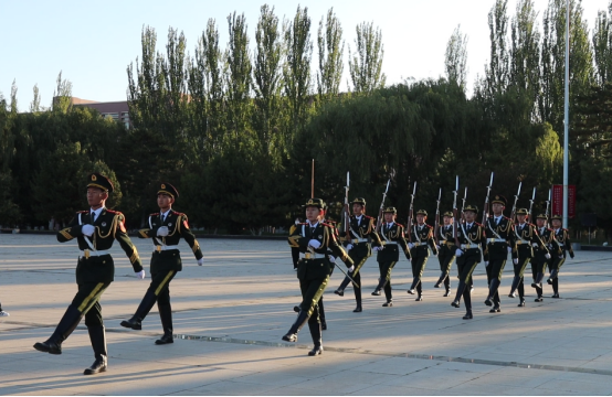迎着第一缕朝阳,升旗仪式正式开始。校国旗护卫队迈着铿锵有力、整齐矫健的步伐走向升旗台。全体人员神情庄重,面向国旗肃然而立,随着一声“升国旗、奏国歌”的口令,国旗迎风招展,国歌慷慨激昂,衷心祝愿伟大祖国更加繁荣昌盛,祝愿人民生活更加幸福美好。
