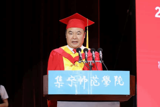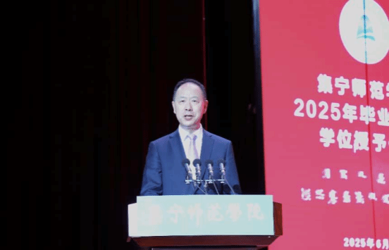教师代表王汉君教授深情回顾了2025届毕业生校园学习生活的点点滴滴,他对毕业生提出三点期许:一愿思想长青;二愿知行合一;三愿初心永驻。王老师以歌声作别,愿同学们此去前程似锦,每一步都奔向光明!