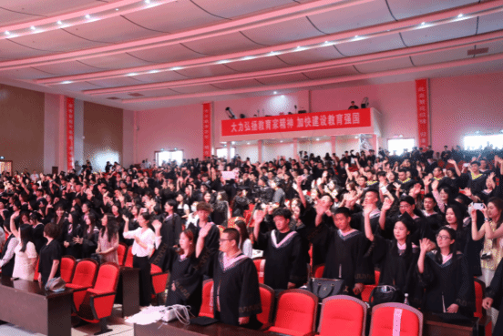 今朝惜别,未来可期。全场师生共同唱响校歌《桃李满天下》,以悠扬婉转的旋律表达对母校的祝福和热爱,凝聚砥砺前行的力量,毕业典礼圆满礼成。