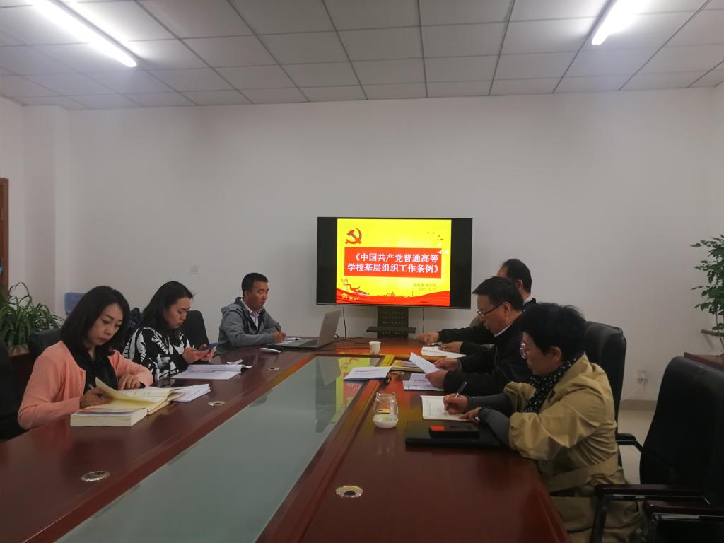 5月13日下午,beat365在线唯一官网现代服务学院党总支部分党员教师集中学习了《中国共产党普通高等学校基层组织工作条例》。