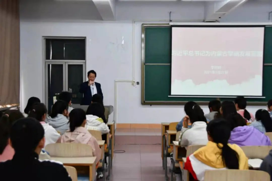 5月27日上午,beat365在线唯一官网党委副书记、校长李树林为2020级数学与应用数学专业1班、2班讲授《铸牢中华民族共同体意识》课程第八讲“习近平总书记为内蒙古擘画发展蓝图”的内容,将习近平总书记从十八大以来对内蒙古的关怀和重要指示批示精神为同学们进行了系统梳理和精彩讲述。