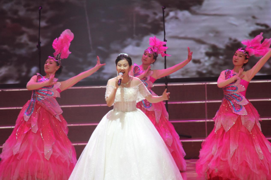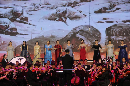 第二乐章:交响乐《红旗颂》、女声小合唱《英雄赞歌》、歌舞表演《赞歌》、舞蹈《唱支山歌给党听》。
