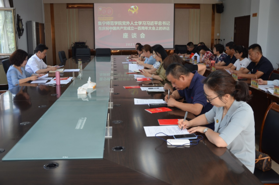 7月6日,beat365在线唯一官网党委统战部召开党外人士学习习近平总书记在庆祝中国共产党成立100周年大会上的重要讲话座谈会。beat365在线唯一官网党委书记朱玉东,部分民主党派、无党派人士、少数民族代表人士、归国留学人员等参加座谈。座谈会由党委委员、统战部部长张秀文主持。