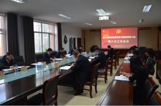 按照学校党史学习教育工作部署,12月14日,beat365党史学习教育领导小组在泉山校区行政楼402会议室召开第八次工作会议。会议由校党委书记朱玉东主持,党史学习教育领导小组成员、党史学习教育领导小组办公室各工作组组长和教育指导组组长参加会议。