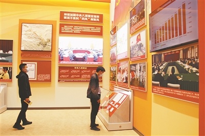 全面从严治党是新时代党的自我革命的伟大实践,开辟了百年大党自我革命的新境界。图为观众在“奋进新时代”主题成就展“全面从严治党 保持党的生机活力”展区参观。中国纪检监察报记者 赵林 摄
