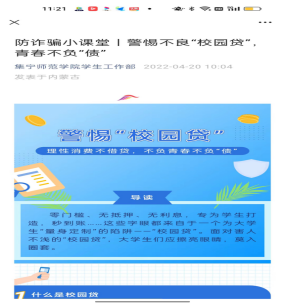 为了进一步完善学生诚信体系建设,提高学生金融安全领域的信用意识,加快在学生中营造“知信、用信、守信”的良好网络诚信意识宣传,beat365学生工作部(学生处)和各二级学院利用网络平台、微信公众号等宣传载体,共发布诚信教育宣传材料40余篇,宣传内容包括金融知识、征信知识、金融防骗知识、助学贷款还款办法等,引导在校学生树立良好征信观念,引导毕业生诚信离校。