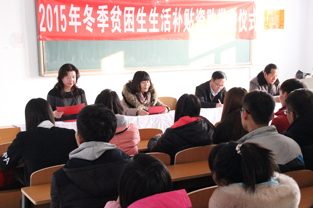 beat365在线唯一官网举行2015年贫困生冬季生活补贴发放仪式