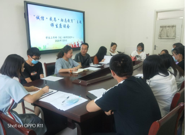 学校学生工作部(处)助学管理中心于7月9日组织召开“诚信、感恩、励志教育”主题座谈会,助学管理中心相关负责人及12名师生代表参加座谈会。与会师生围绕座谈提纲踊跃发言,畅谈自己对诚信、感恩、励志等内容的认识感悟,提出了对学校助学管理工作的一些意见、建议。