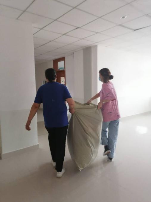 为使毕业生感受到学校的关怀,按照学校要求,学生公寓全体工作人员努力营造温馨的离校氛围,通过公寓广播、播放毕业季歌曲、张贴手绘毕业季海报等多种宣传形式,通过暖心的关怀、贴心的服务、细心的行动,让毕业生们时时刻刻感受到学校对他们的热情和眷恋,公寓管理员、保洁阿姨、维修工叔叔全都摇身一变,变成了暖心的搬运工、热情的小帮手。清点物品、分类整理、搬运行李、投放垃圾等等,在学生公寓的每个角落,总能看见忙碌的学生公寓工作人员,总能看见一幕幕温馨的场景。