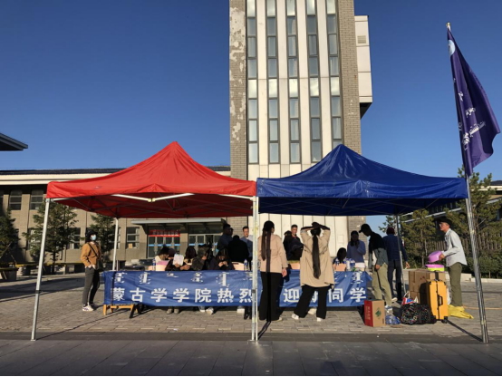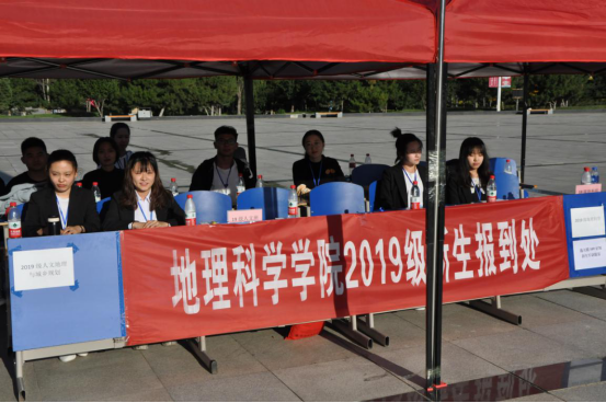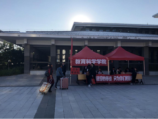 学校在火车站、汽车站设立了迎新站点,学长学姐们拉着迎新的横幅站在校车两侧早早等候。走进校园,就能看到小路两侧挂满了飞扬的彩旗,校园安全志愿者协会的成员们在每一个路口站岗领路,主教楼和逸夫楼前,各个学院的迎新帐篷秩序井然的排列开来,学长学姐穿着统一的工作服,精神饱满,准备好了迎接新生的工作。