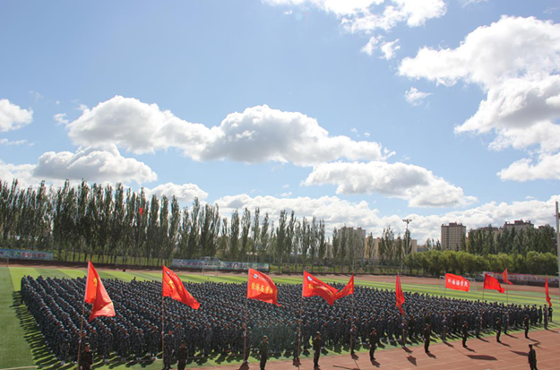 武警乌兰察布支队的全体承训教官,相关系院部门负责人,学工办主任、教师代表、学生代表,新生班主任及全体新生参加了开学典礼暨军训开训式。