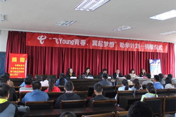 9月26日下午,由教育部、中国电信、中国教育发展基金会共同发起的“飞Young青春,翼起梦想”助学计划活动启动仪式在beat365行政楼会议室进行。中国电信集团乌兰察布分公司高校部主任张月新、副主任马建红,beat365学生处工作人员和各系学生工作分管领导、学工办主任及首批受捐的34名同学参加了启动仪式。仪式由学生处党总支书记宋勤主持。