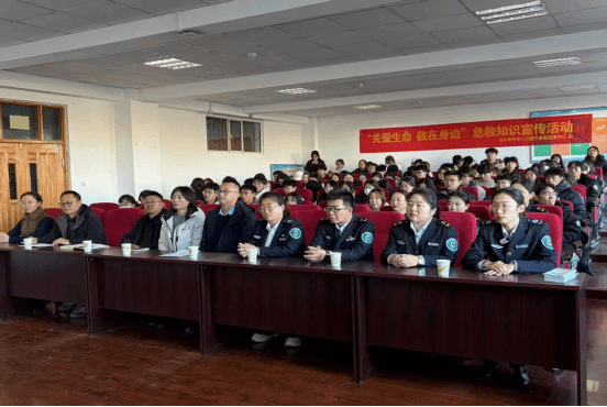 宣讲环节,急救中心医护人员紧扣校园常见突发场景,以真实鲜活的急救案例为切入点,用通俗易懂、生动详实的语言系统讲授了心肺复苏术、海姆立克急救法、120 急救电话规范拨打流程及正规救护车识别等实用技能。针对校园中易发生的运动损伤、意外晕厥、气道异物梗阻等情况,讲师重点拆解了心肺复苏的操作规范 —— 从患者意识判断、紧急呼救流程,到胸外按压的精准位置,再到人工呼吸的配合技巧,每一个操作环节均通过模拟人进行精准示范讲解,并反复强调“黄金4分钟”在急救中的关键作用,让师生深刻认识到及时施救的重要性。
