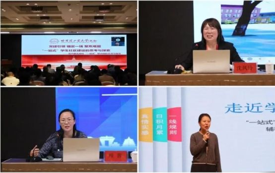 培训邀请哈尔滨工业大学党委学生工作部部长、紫丁香书院党委书记杨俊敏,向大家介绍了全国“一站式”学生社区建设从1.0到3.0的模式更新,以及哈尔滨工业大学(威海校区)在党建引领、学院书院融合构架下“14591”一站式特色育人模式经验总结;西安交通大学南洋书院院务副主任、全国“一站式”学生社区咨询组成员顾蓉老师详细解读了“一站式”学生社区的建设指南、内涵要素和改革趋势,明晰了新形势下的实践路径;扎兰屯职业学院学生工作处负责人沈凤玲老师,围绕本校“一站式”学生社区建设的实践路径与创新举措进行了专题报告,为大家提供了新启发和新思路;东北大学辅导员、全国最美高校辅导员、辅导员年度人物姜媛老师深情传递了一线辅导员的育人担当,如何让育人工作更有温度和力度。