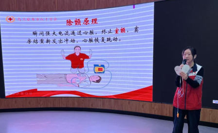培训现场,刘洋老师采用“理论讲解+情景模拟+实操考核”的立体教学模式,就日常工作生活中最常遇到的突发意外事件,系统讲解了海姆立克急救法、心肺复苏(CPR)黄金四分钟急救原则、自动体外除颤器(AED)操作规范、气道异物梗阻解除等核心知识,重点解析了心脏骤停的识别和AED设备的基本原理、操作步骤、电极片的正确粘贴位置等知识,强调了AED设备在抢救心脏骤停患者时的重要作用。