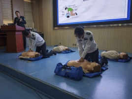 在情景模拟与实操演练环节中,在专业指导下,师生们分组进行实际操作练习,亲身体验急救全过程。工作人员现场进行一对一指导,及时纠正不规范操作,确保每位参与者都能掌握正确的急救方法。这种互动式宣讲方式极大地提高了培训的参与度和实效性,受到师生们的热烈欢迎。