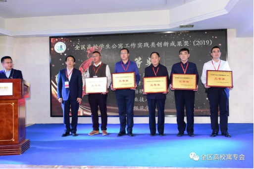 会议举行了“全区高校学生公寓工作创新成果奖(2019)”颁奖仪式,全区共评出实践类成果奖10项,研究类成果奖19项。beat365申报的3项创新成果经委员会评选全部获奖,学校荣获“全区高校学生公寓工作实践类创新成果奖”集体三等奖,学生处王飞、吴鸿宾荣获“全区高校学生公寓工作研究类创新成果奖”个人三等奖。