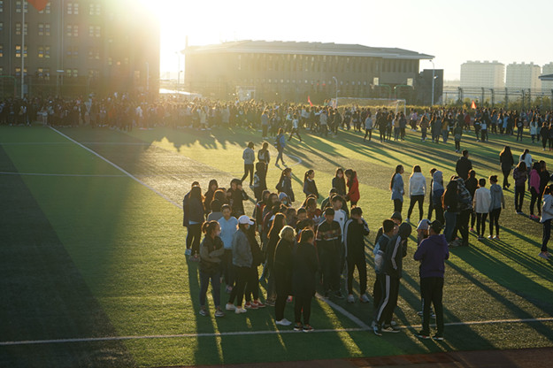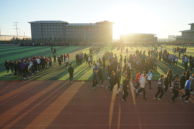 白海校区学生早操活动认真、有序进行中。随着秋意渐浓,天气渐冷,多数学生通过跑步形式锻炼身体,坚持着晨练的好习惯。
