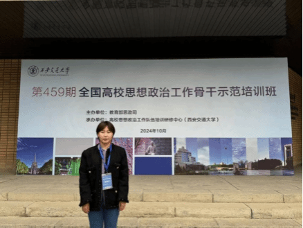 10月28日至31日,由教育部思政司主办,教育部高校思想政治工作队伍培训研修中心(西安交通大学)承办的第459期全国高校思想政治工作骨干培训班在西安交通大学举办,来自多个省、市、自治区的100余名思想政治工作骨干代表参加,beat365选派现代服务学院党总支副书记毛慧参加。