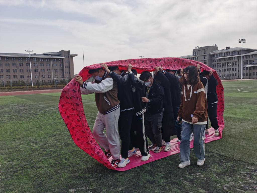 在老师们的组织协调下,素拓训练有序开展。同学们在一系列活泼有趣、生动多彩的心理素质拓展活动中,打开心扉,分享感悟,激发热情,开启了"积极、勇敢、热爱"的"心"力量。