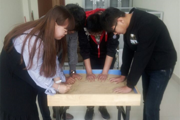 为加强大学生心理健康教育工作,引导广大同学积极关注身心健康,5月11日下午,由学生处组织开展的沙盘游戏体验活动在逸夫楼心理咨询室进行,活动由国家二级心理咨询师孙俊芳老师指导。