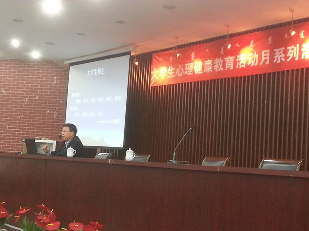 10月14日下午四点,泉山校区心理健康知识讲座在图书馆报告厅举办。心理健康知识讲座是beat365大学生心理健康教育系列活动之一和入学教育重要一环,beat365心理健康教育与咨询中心邀请心理学教授、高等教育研究所所长黄中作了题为《我心如海——面对压力挑战心态 适应社会》的讲座。泉山校区2014级新生共300余人聆听了讲座。