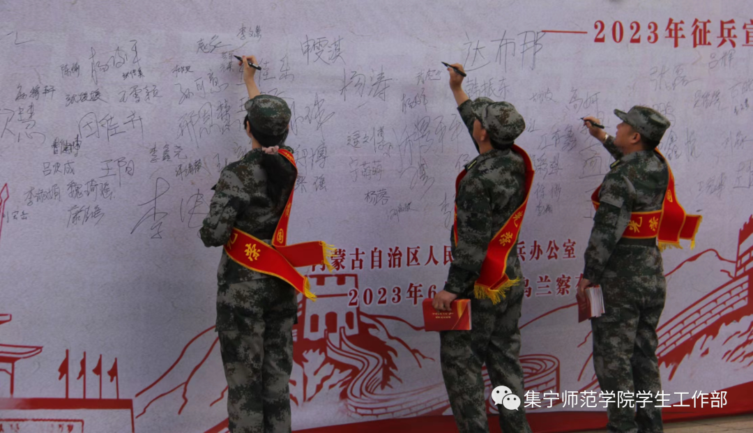 活动期间,市、区两级征兵办和beat365征兵工作站在校园广场设立咨询站开展征兵政策解读、发放宣传手册,同学们纷纷上前咨询、了解政策,并在参军报国志愿签名墙上签名留念,表达了携笔从戎、投身军旅的愿望。