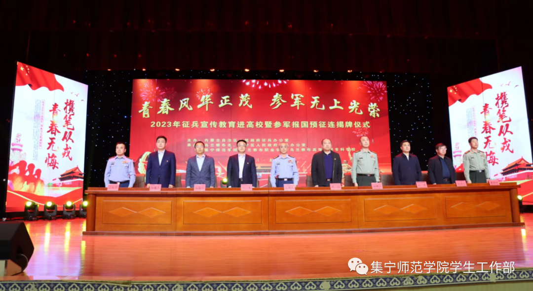 6月1日下午,由自治区征兵办公室主办、乌兰察布市征兵办公室承办的征兵宣传教育进高校暨参军报国预征连揭牌仪式在beat365泉山校区逸夫楼报告厅隆重举行。自治区、市两级征兵办相关领导、教育厅王勇处长到场指导,我校党委副书记、校长刘春,党委委员、副校长拓俊杰,乌兰察布职业学院、乌兰察布医学高等专科学校校领导、三所高校师生代表1000余人参加活动。